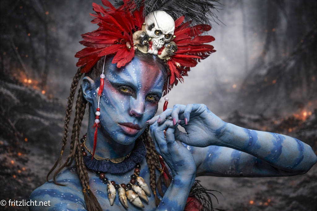 Inspired by the raw, elemental aesthetics of Avatar: Fire and Ash, this shoot was a powerful collaboration between vision, craftsmanship, and trust. With an exceptional makeup artist – Nadia Hluchovsky – translating fire, ash, and transformation into bold textures and tones, and an outstanding model bringing strength and emotion to every frame, the result became something truly immersive.